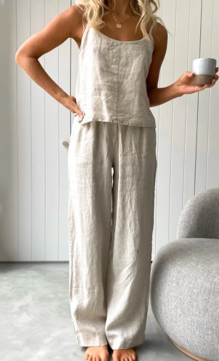 Best Cotton Linen Loungewear Set for Women – 2-Piece Sleeveless Top & Wide Leg Pants for Summer Comfort