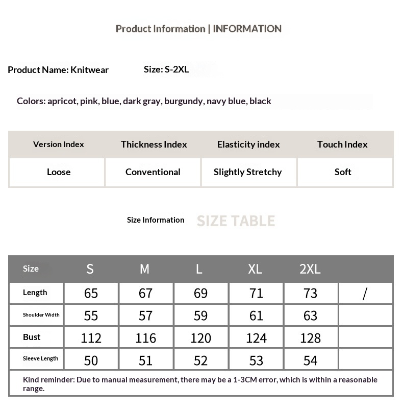 Colors: Apricot, Pink, Blue, Dark Gray, Wine Red, Navy Blue, Black