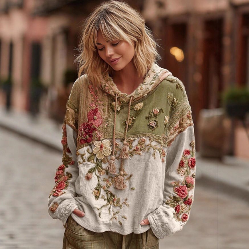Women’s Artistic Vintage Floral 3D Effect Pullover Hoodie – Retro Boho Graphic Sweatshirt (XXS-6XL)