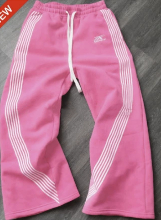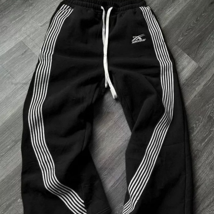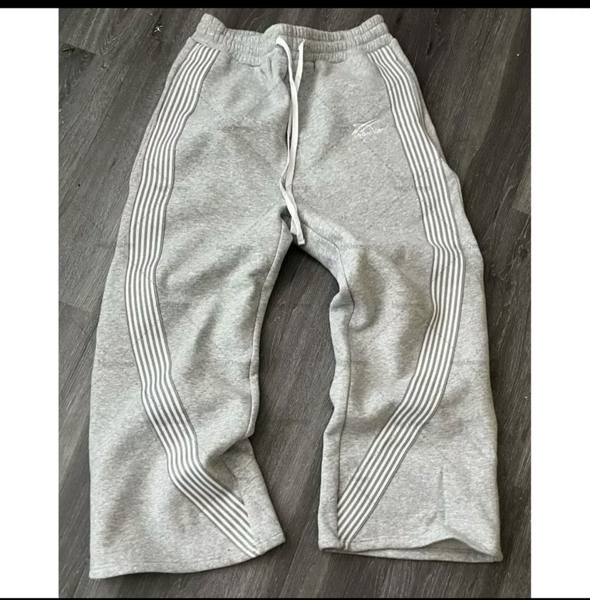 Men’s Harajuku Baggy Sweatpants – Y2K Embroidered Stripe Wide-Leg Joggers – Streetwear Oversized Fleece Trousers – Urban Hipster Track Pants
