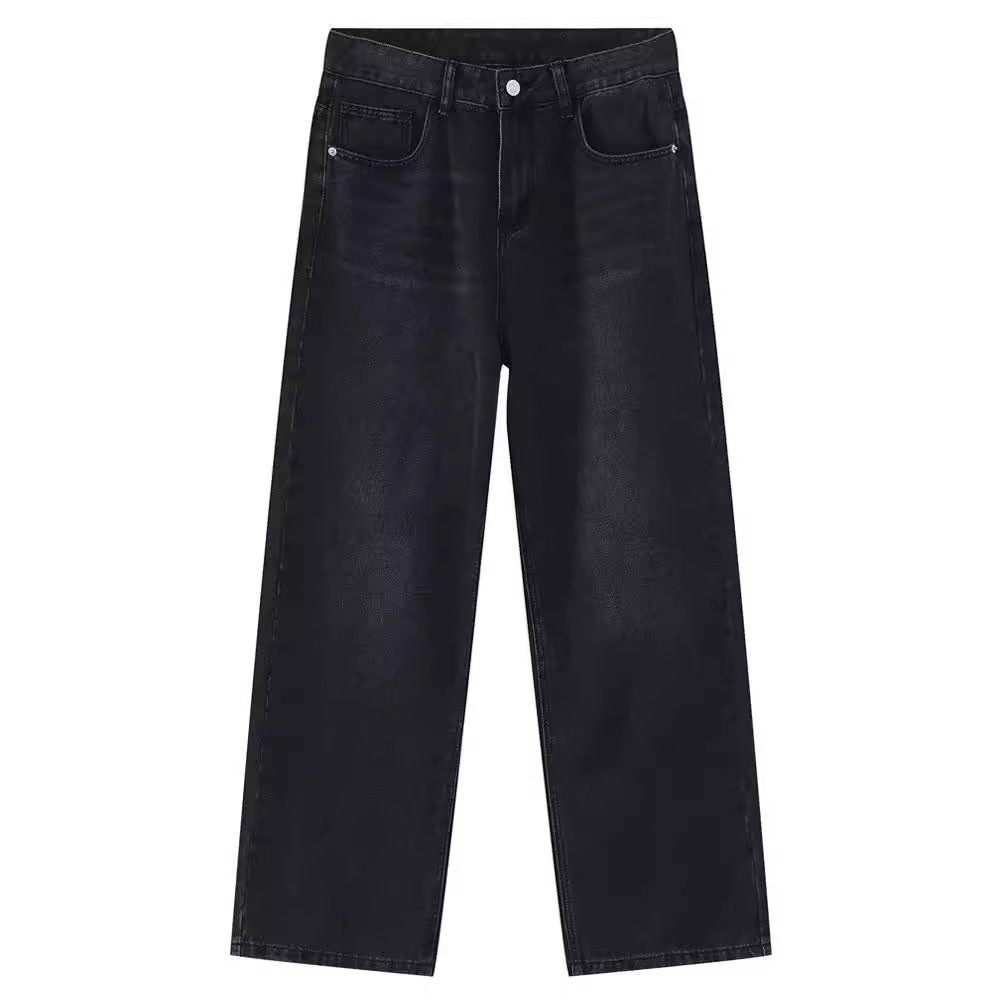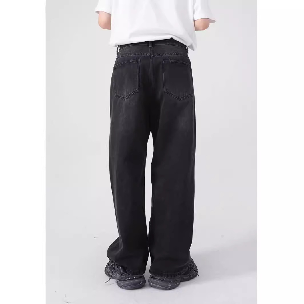 Men’s Black Washed Wide-Leg Baggy Jeans | Straight Fit Streetwear Denim Pants