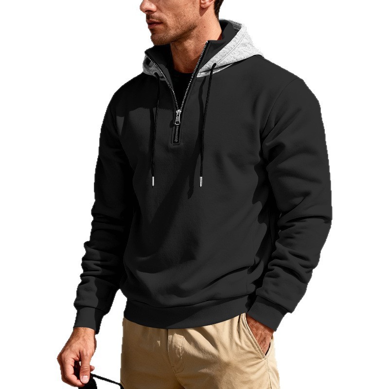 Men’s Urban Fleece-Lined Quarter-Zip Hoodie with Contrast Contrast Hood