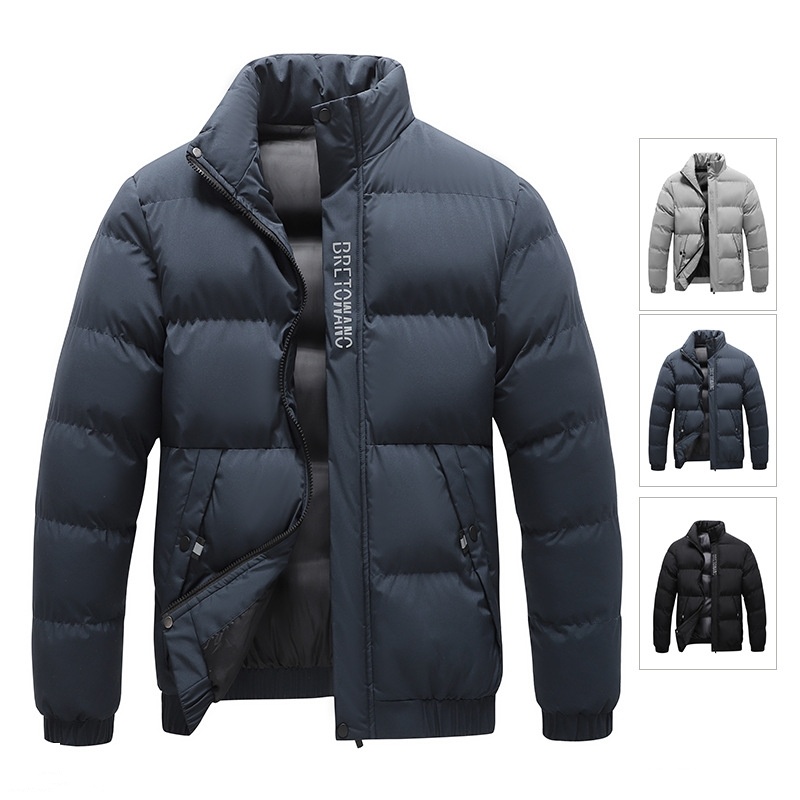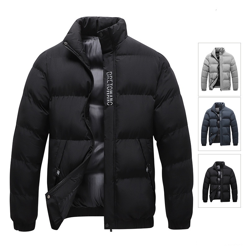 Men’s Heavyweight Puffer Jacket – Windproof Winter Bubble Coat with Warm Cotton Filling – Casual Stand Collar Quilted Parka