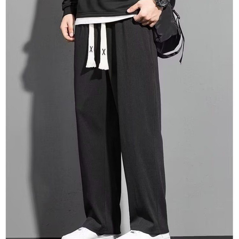 Men’s Ice Silk Wide-Leg Drawstring Pants | Lightweight Loose Fit Ribbed Trousers | Casual Streetwear