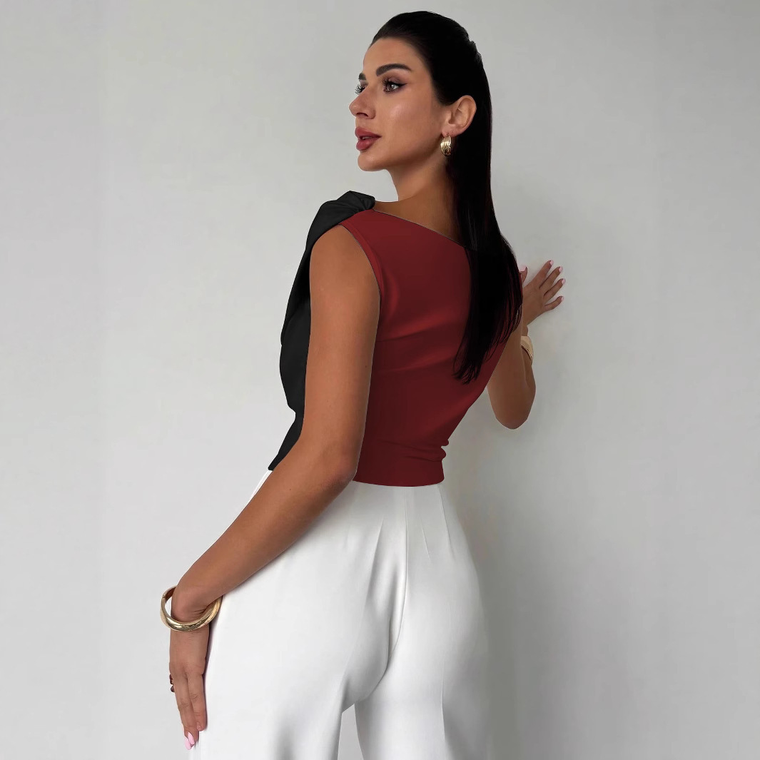 Trendy Slim-Fit Sleeveless Blouse for Women – Colorblock Off Shoulder Crop Top
