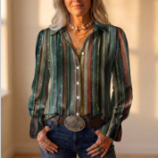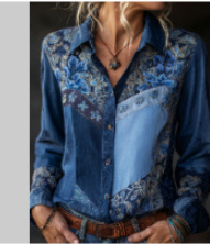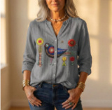 Women’s 3D Floral Embroidered Gold Lace Appliqué Long Sleeve Blouse