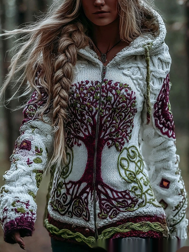 Boho Tree of Life Hooded Cardigan – Premium 3D Knit 1-Piece Favorite