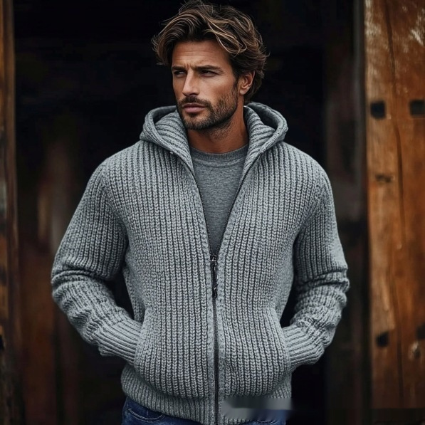 Features: Full front zip closure, cozy oversized hood, and textured cable-knit sleeves for a high-end feel.