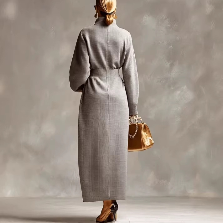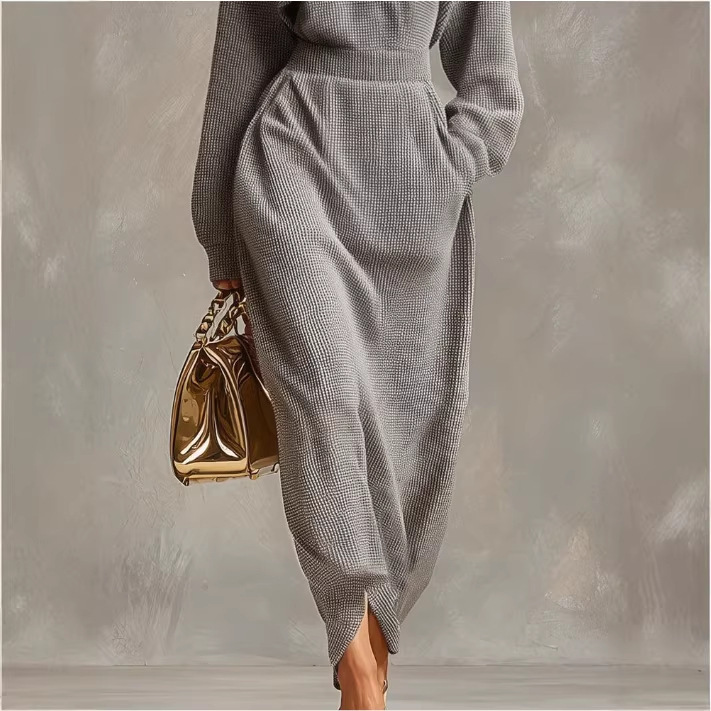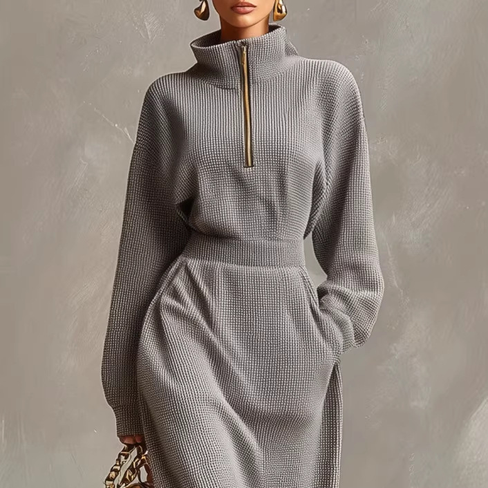 Women’s Half-Zip Mock Neck Knit Maxi Dress – Long Sleeve Casual Sweater Dress with Pockets – Elegant Loose Fit Solid Color Longline Robe