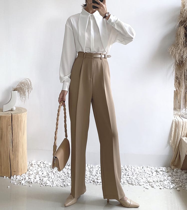 Chic Loose-Fit Women’s Work Pants – Elegant High-Waist Design